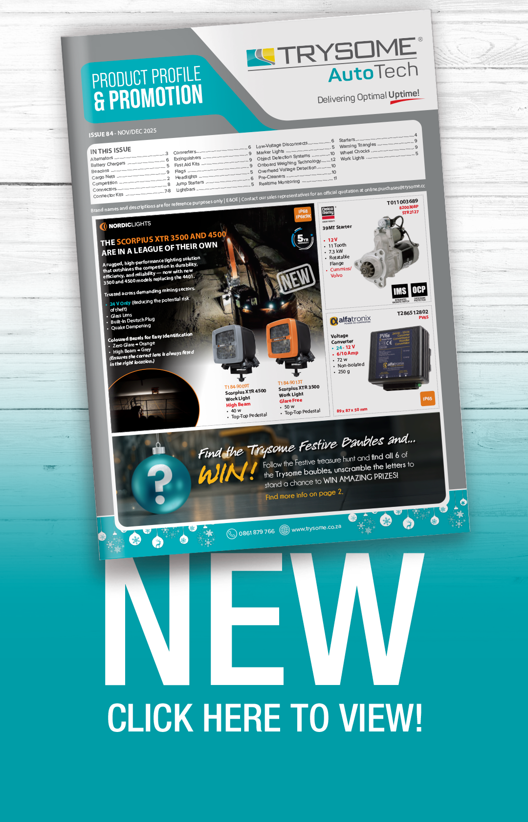 Trysome is focused on sourcing OEM and specialised auto-electrical, replacement components, collision avoidance and telemetry systems for operators of heavy-duty automotive, earth-moving, construction, agricultural, transport and mining machinery.