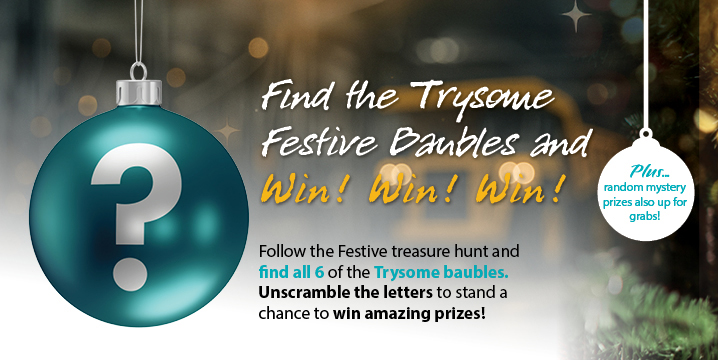 Follow the Festive treasure hunt and find all 6 of the Trysome baubles.